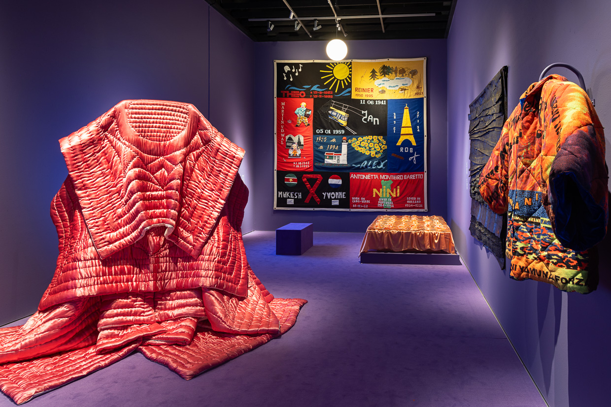 In de woonkamer speelt Célio Braga in op thema’s als verbondenheid, verlies en verzet binnen de LHBTQIA+ gemeenschap, waarbij textiel als medium en metafoor een centrale rol speelt. In de slaapkamer hangt een quilt uit 1997, gemaakt door de Brabantse HIV Vereniging; elke lap een herinnering, elk stukje stof een gezicht.
